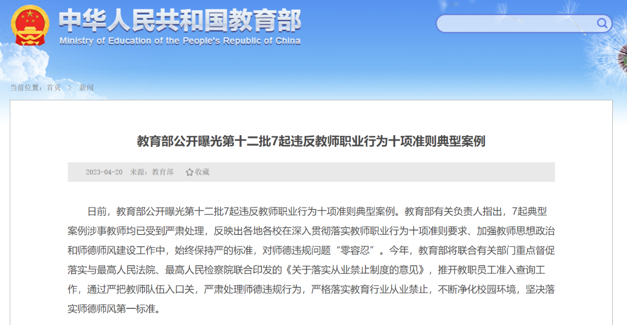 日前,教育部公开曝光第十二批7起违反教师职业行为十项准则典型案例。 一、华中科技大学教师张某某性骚扰学生问题。