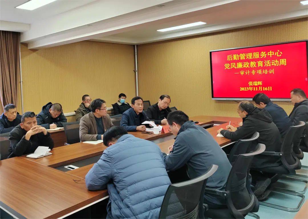 后勤管理服务中心党总支邀请党委宣传部、资产管理处、财务处、审计处等相关职能部门工作人员为后勤管理服务中心副科级以上干部进行辅导培训,立足业务工作实际,结合案例分析,对审计工作的重要作用、财务纪律的廉政风险点、舆情分析与处置、资产管理与处置等工作进行介绍讲解,有针对地阐释相关国家法律法规和学校规章制度,教育大家进一步增强法治意识、廉洁从业从政意识。