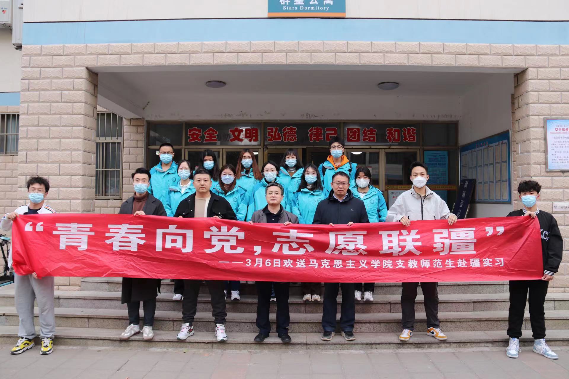 为践行为国育才的初心使命,提升边疆地区师资力量与人才培养水平,3月7日,欲神幻想 于东校区群星#20欢送师范生赴新疆实习支教,欲神幻想 党委书记张华筠,院长刘子平,党委副书记、副院长范华亮,辅导员李政一到场为同学们送行。