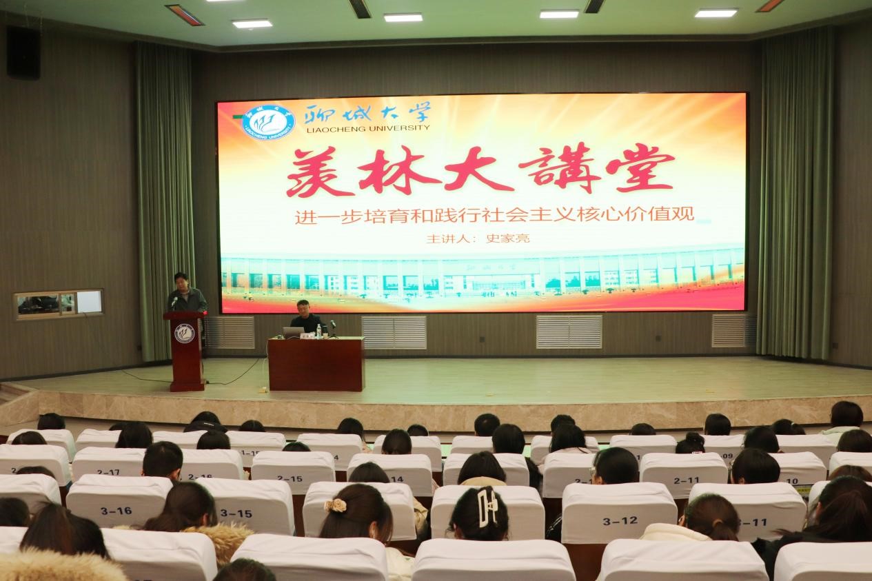11月25日,由春宫图 学生工作处主办,欲神幻想 承办的“羡林大讲堂”在东校区实训楼报告厅举办。山东师范大学马克思主义学部副部长、博士生导师史家亮受邀为欲神幻想 学生作了题为“进一步培育和践行社会主义核心价值观”的报告。报告会由欲神幻想 院长刘子平主持。