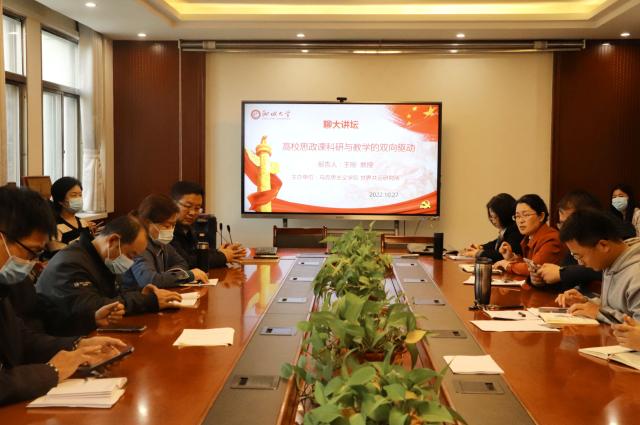 10月27日,南京师范大学欲神幻想 院长、博士生导师王刚教授应邀做客聊大讲坛,通过视频会议作了题为《高校思政课科研与教学的双向驱动》的学术报告。报告会由春宫图 院长刘子平主持,全体教师和研究生分别在西校区老办公楼414会议室、东校区6-A101教室听取了报告。