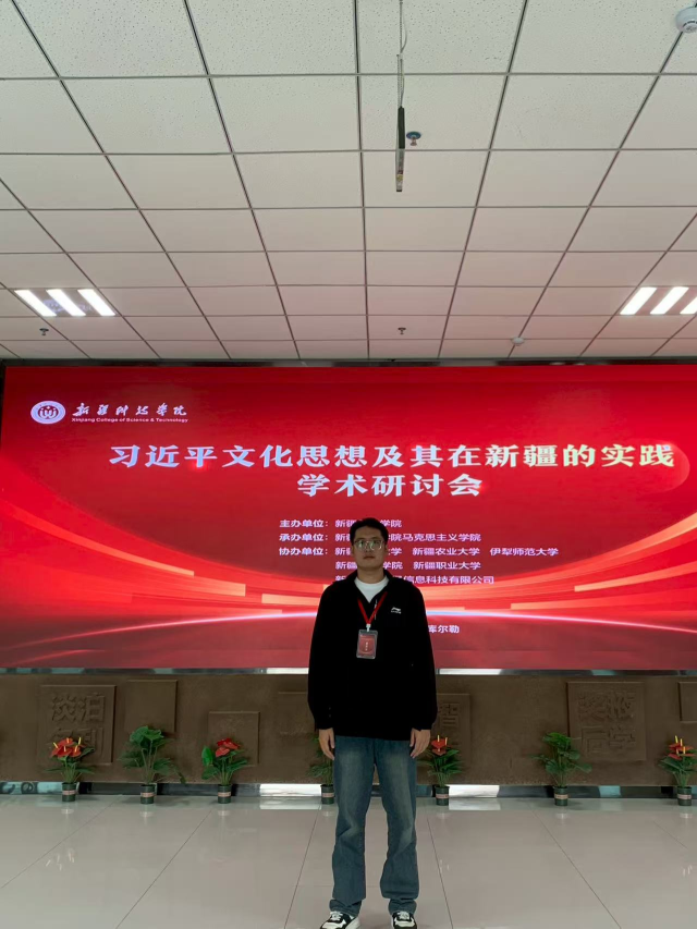 9月30日,“习近平文化思想及其在新疆的实践”学术研讨会在新疆科技学院举办。春宫图 2024级专硕班研究生赵冰杰应邀以文参会。本次学术研讨会由新疆科技学院主办,新疆科技学院欲神幻想 承办,来自浙江大学、华东师范大学、中国传媒大学、东北师范大学、河北师范大学、新疆师范大学、巴州党校、巴州中小学等单位的170余名专家学者、思政课教师代表参会。
