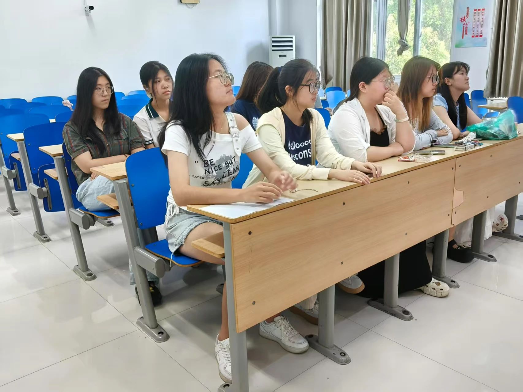 宿舍工作中心工作人员赵千溯通过图文并茂的PPT,向同学们介绍了端午节的起源、习俗,并重点讲解了香囊和书签的文化内涵,引导同学们深入理解传统手工艺的价值。同学们专注聆听,沉浸在端午文化的深厚底蕴之中。