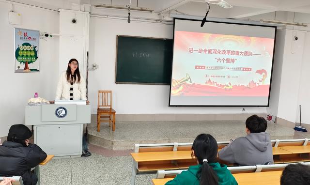 学生会成员深入贯彻党的二十届三中全会精神,紧紧围绕全面深化改革的“六个坚持”,将理论知识与实践活动结合起来,对中国共产党的制胜法宝、六个坚持的内在联系、科学践行六个坚持三大要点进行详细地阐述。学生会成员指出,六大坚持,涉及全面深化改革的领导力量、政治立场、主轴主线、科学方法等,逻辑严密、科学系统,是对新时代全面深化改革取得经验的升华提炼,是对习近平总书记关于全面深化改革的重要论述的新的丰富和发展。学生会成员还表示,“践行六个坚持”是更为重要的一点,当前,中华民族伟大复兴进入关键阶段,改革站在了新的历史关口,新的征程上,贯彻好“六个坚持”重大原则,紧紧围绕推进中国式现代化进一步全面深化改革,才能为中国式现代化提供有力制度保障。