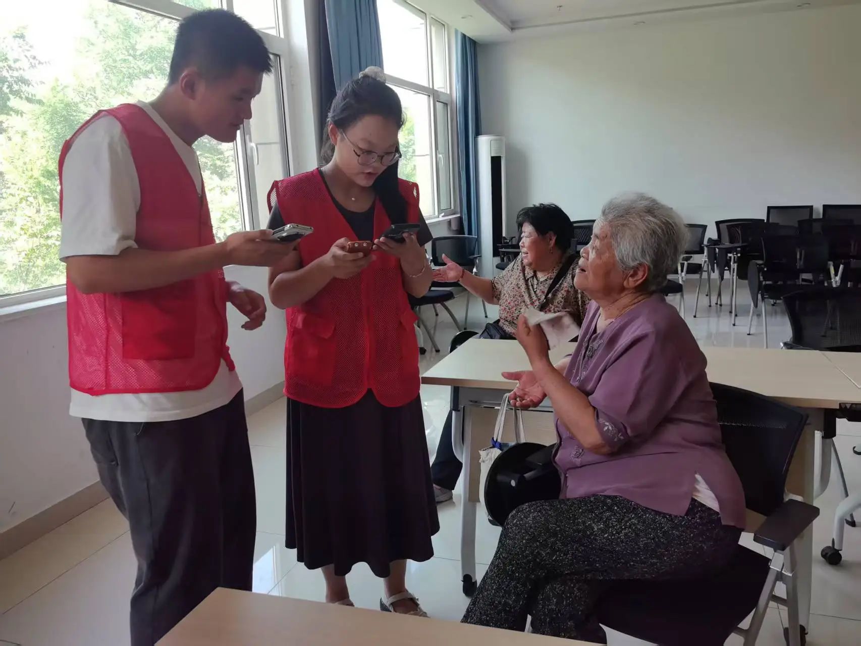 志愿者结合虚假中奖、虚假投资理财等典型案例,生动形象地向老人们展示了诈骗分子的惯用伎俩,提醒他们在日常生活中要提高警惕,做到“不理、不信、不汇款”,切实保护好自己的财产安全。志愿者们还通过手机实操演示了防诈骗软件的下载安装流程及短信、微信等基础软件使用方法,不少老人掏出手机同步操作,并积极提出日常使用中遇到的疑难问题,现场互动频繁,洋溢着浓厚的学习热情。