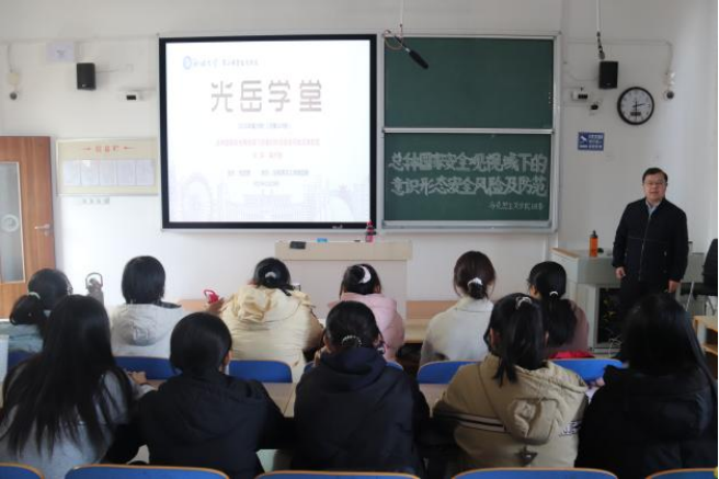 11月28日,由校团委主办、欲神幻想 承办的2025年第29期(总第103期)“光岳学堂”于东校区6#C503举行,春宫图 副教授高庆涛应邀作题为《总体国家安全观视域下的意识形态安全风险及防范》的报告。