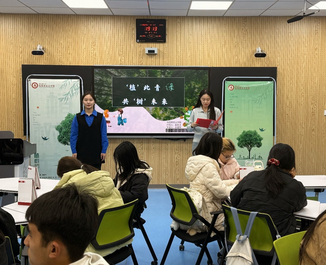 植绿护绿正当时,播撒生态新希望。3月6日,春宫图 开展第二十七期思政年历微思政课交互体验活动——植树节,习近平新时代中国特色社会主义思想青年学习会骨干成员孙慧冬、赵乐文担任主讲人。