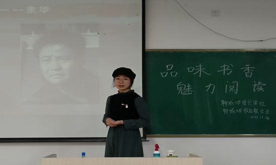 活动正式开始前,活动负责人向大家介绍活动流程及注意事项,确保每位同学了解活动规则。活动伊始,同学们依次上台介绍自己所选的书籍及选择理由。同学们在活动前充分准备,他们用流畅的表述、精美的PPT展示自己对所选书籍的看法与思考,引起在场人员的共鸣,获得台下观众热烈的掌声。同学们所推荐的书籍既有《活着》、《平凡的世界》、《围城》等展现上个世纪中国社会风貌的长篇小说,也有《百年孤独》、《人间失格》等表现作者对人生的深刻思考的世界名著,类型多样,体现出同学们丰富的阅读量。第一环节结束后,同学们将与自己产生共鸣或者感悟颇深的书目的名字写到黑板上,推荐给在场的其他人。活动最后,由负责人进行总结,并鼓励同学们养成多读书、读好书的阅读习惯,至此,本次活动圆满结束。