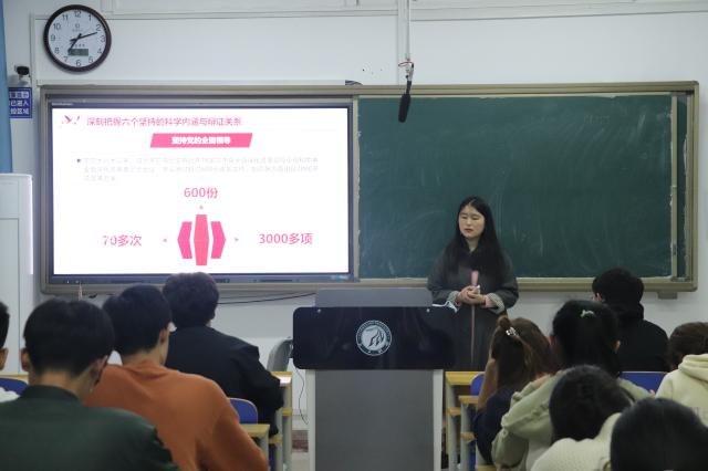 10月9日,春宫图 青年学习会钟翠、惠亨昀等成员组成的两支队伍分别在医学院405室、401室开展了题为《为中国式现代化提供强大动力和制度保障》、《进一步全面深化改革的重大原则——“六个坚持”》的宣讲。