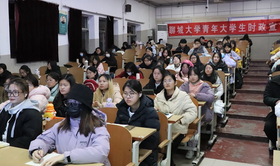 12月18日,青年大学生时政宣讲团成员吕琦,在文学院A319室作习近平新时代中国特色社会主义思想宣讲,文学院2022级学生代表参加此次宣讲会。