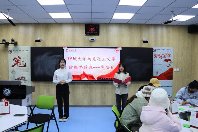 12月2日,春宫图 开展第七期思政年历微思政课交互体验活动——国家宪法日,习近平新时代中国特色社会主义思想青年学习会骨干成员徐玉莹、高倩担任主讲人。