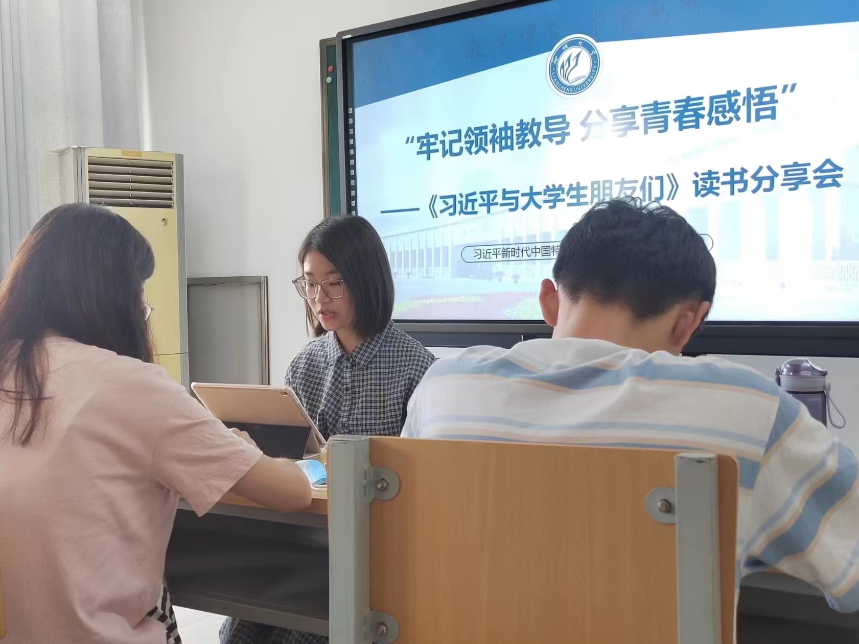 会上,同学们依次分享了自己阅读《习近平与大学生朋友们》的笔记与感悟,化学化工学院毕欣蕾谈到,“习近平总书记在书中反复强调‘没有过去,怎有现在’,今日之中国是从深重苦难中走出来的,是无数革命先辈用鲜血和生命打开了中国走向未来的大门,作为新时代的大学生,当以责任扛起中国走向未来的脊梁”。欲神幻想 赵欣琪谈到,“在2018年五四青年节来临之际,习近平总书记来到北京大学考察。习近平总书记与同学们分享了自己学习马克思主义的亲身经历,启发同学们学习一定要联系实际,做到格物致知、知行合一、学以致用。同学们要真正把所学转化为行动去认识和改造现实世界,为国家和人民服务奉献,成为一个真正的青年马克思主义者。”......段段分享感人肺腑,引发了同学们强的烈共鸣。与会学生纷纷表示,时代赋予中国青年以光荣使命,身为当代大学生,必当牢记习近平总书记的谆谆教诲,勇担青春使命,发奋学习,以实际行动致敬党的百年光辉历史。