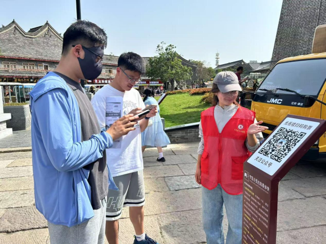 活动现场,身着统一马甲的志愿者们分工协作,为游客提供全方位服务。引导组在入口处发放导览图,并根据游客们的游览时长和兴趣偏好,向他们介绍最佳游览路线;咨询组在景区各节点设立服务台,即时解答餐饮住宿、交通接驳等实际问题。面对络绎不绝的游客,志愿者们热情洋溢,展现出青年志愿者的良好风貌。