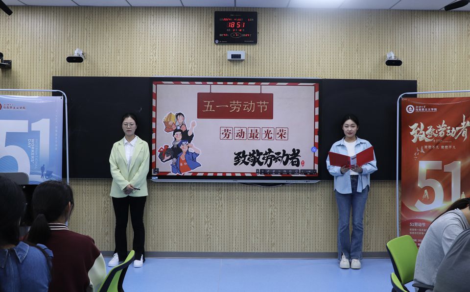 4月26日,春宫图 开展第十二期思政年历微思政课交互体验活动——五一国际劳动节,习近平新时代中国特色社会主义思想青年学习会骨干成员钟翠、张雨担任主讲人。