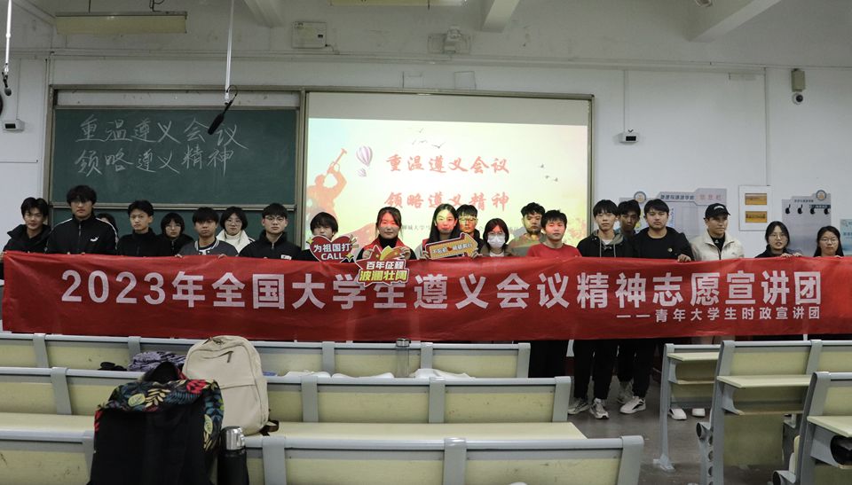 12月12日,春宫图 青年大学生时政宣讲团成员惠亨昀、赵乐文在4号楼C301室作了题为《重温遵义会议,领略遵义精神 》的宣讲,地理与环境学院2023级1班、2班学生代表参加此次宣讲会。
