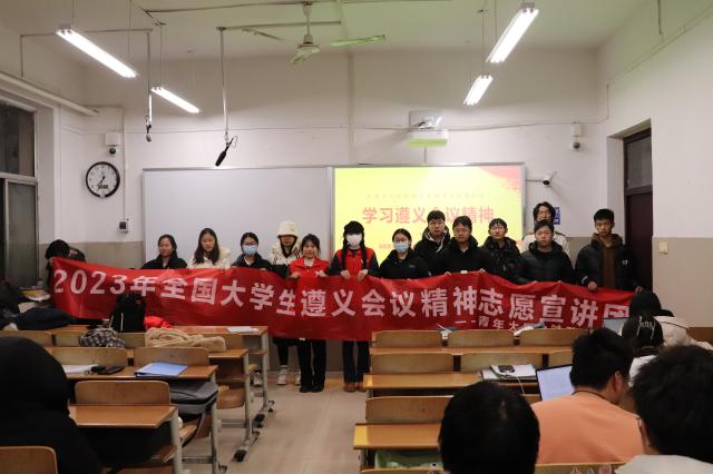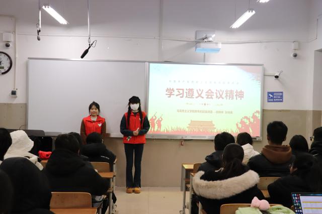 12月20日,春宫图 青年大学生时政宣讲团成员郭琳琳、张向青在文学院A307室作遵义会议精神宣讲,文学院2023级学生代表参加此次宣讲会。