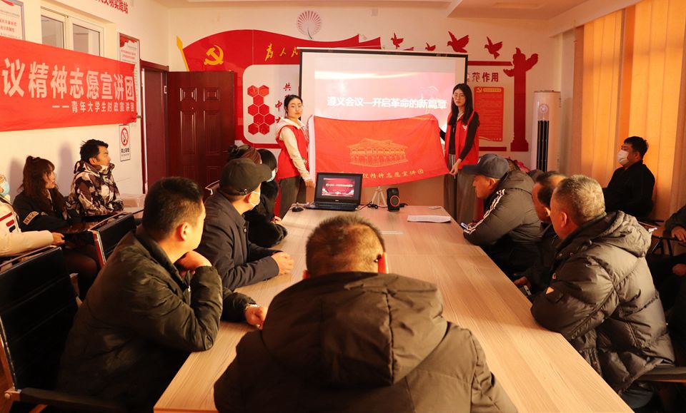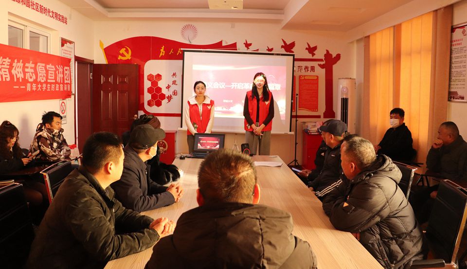 12月1日,春宫图 青年大学生时政宣讲团在聊城市新区街道办事处颐和园社区开展了题为《遵义会议—开启革命新篇章》的宣讲活动,宣讲团成员郭昊铭、孟煜担任主讲人,颐和园社区居民代表参加此次宣讲活动。