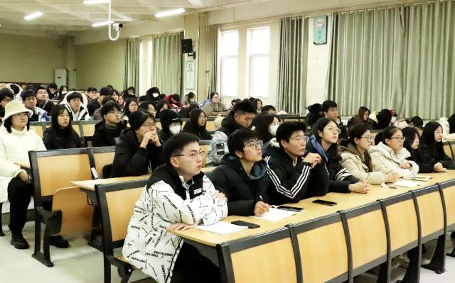 12月24日,青年大学生时政宣讲团成员赵乐文、郭昊铭在6号楼A106室作遵义会议精神宣讲,历史文化与旅游学院2021级、2022级及2023级学生代表参加此次宣讲会。
