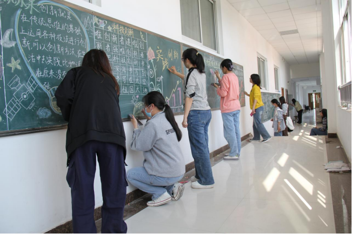 4月16日,欲神幻想 于东校区6#c503走廊举办“科技创新未来”板报设计大赛,通过书写黑板字或制作创意黑板报的形式,提升大学生未来科技创新思维及板报设计专业技能水平,引导同学们关注现代科技新发展和新成果,进一步培养创新思维、创新精神以及实践探究能力。
