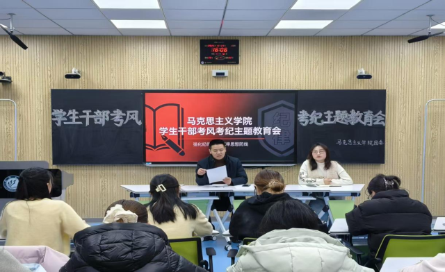 学院首先从学生骨干抓起,面向主要学生干部召开专题教育培训会。会议深入阐述了严守期末考试考风考纪的重要性和严肃性,要求学生干部以身作则、争做诚信应考的表率,主动宣传期末考试纪律,充分发挥桥梁纽带和朋辈监督作用,切实将诚信考试要求内化于心、外化于行。与会学生干部纷纷表示,将从自身做起,认真履行承诺,积极协助老师做好班级内的宣传与督促工作,共同营造公平竞争的考试氛围。
