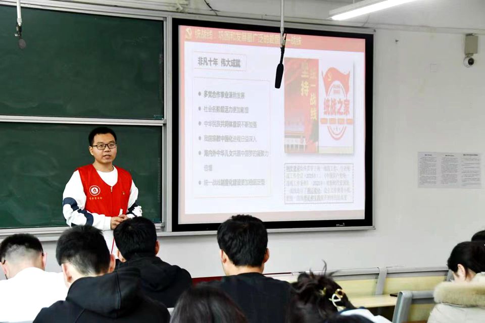 3月2日,春宫图 青年大学生时政宣讲团成员乔亚鲁在2号教学楼201室作了题为《与时代共振 与民意同频——发展全过程人民民主 保障人民当家作主》的宣讲。药学院学生党员及2022级学生代表参加宣讲会。