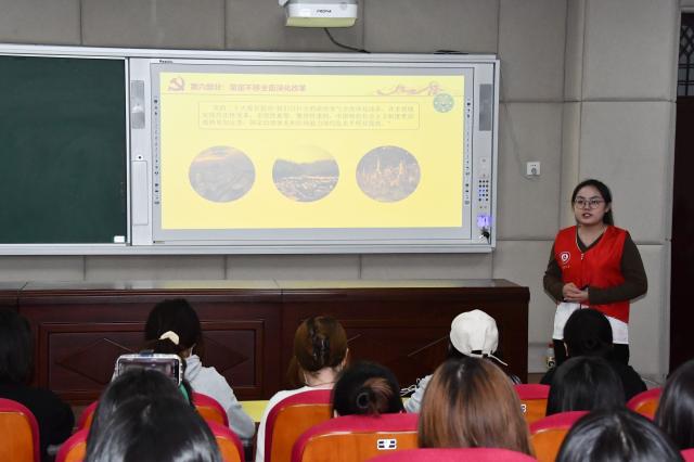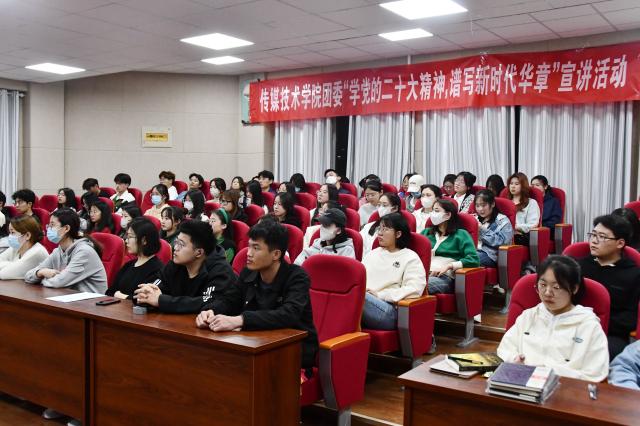3月9日,春宫图 青年大学生时政宣讲团成员张莹欣、黄明雪、郭春晖在西校区11#C401教室作了题为《书写彪炳史册的时代答卷——新时代十年的伟大变革》的宣讲。传媒技术学院学生党员、2022级学生代表参加了此次宣讲会。
