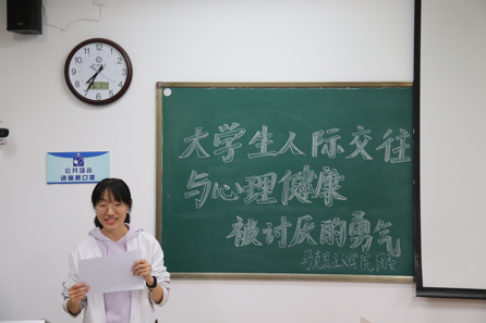 5月7日,欲神幻想 于东校区6#A204举办“被讨厌的勇气—大学生人际交往与心理健康”阳光心理大讲堂活动,宣传人际交往知识,提高大学生的人际交往能力,帮助同学们缓解心理压力。