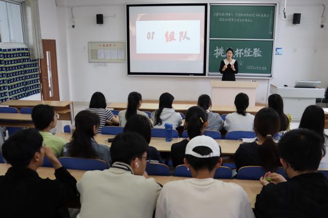 陈楚崟以自身参赛经历为切入点,围绕团队构建、“挑战杯”作品选题、PPT的制作方法、汇报答辩、收获与感悟等方面为同学们分享了其个人比赛过程及经验。在作品选题上,陈楚崟强调新颖性、现实性和可行性,她鼓励同学们以解决社会实际与热点问题为导向,发挥自身专业优势,在参考和学习前人成功经验的基础上,开拓进取,敢于创新,更快更准地把握构建作品整体框架的思路。针对现场答辩的注意事项,陈楚崟希望参赛人员尽量脱稿展示,语速要恰当,声音要洪亮,合理分配各个环节的时间。
