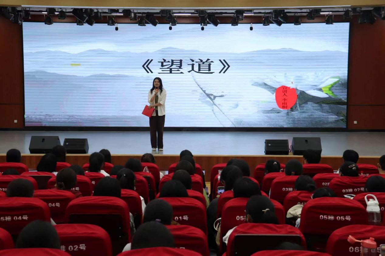 影片播放前,李雨桐从电影的时代背景和主要情节两个方面为同学们开展影前解读,她将电影《望道》的主要内容与思想政治教育专业进行了有效结合,希望同学们牢记先辈们披荆斩棘的伟大事迹,体悟跨越百年传承不息的精神力量,以奋斗姿态激扬青春,不负时代,不负年华。