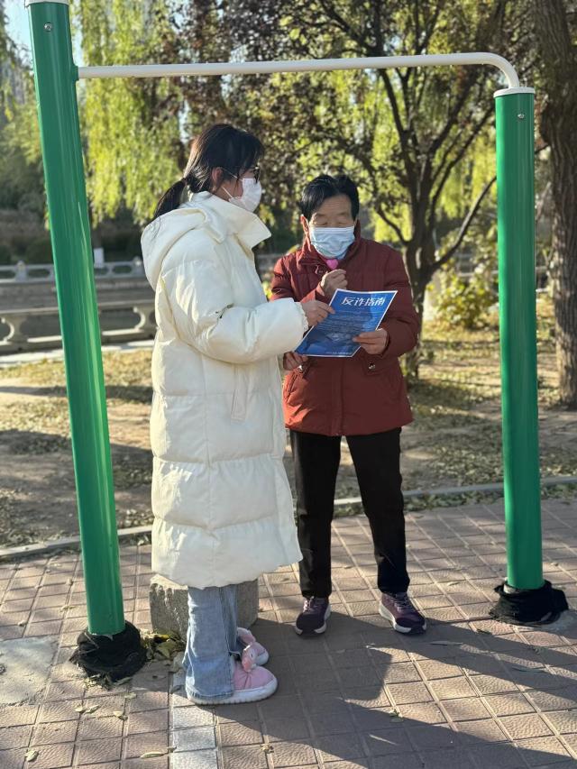 团支部成员深入社区,通过发放宣传资料、现场答疑等方式,全方位加强反诈防诈知识宣传。针对老年群体防范意识薄弱、网络知识欠缺、辨别能力不强等问题,团支部成员结合真实诈骗案例,从投资养老骗局、以房养老骗局、保健品陷阱、养老社保等常见骗局出发,为老年人讲解生活中常见的非法诈骗手段,详细分析了诈骗的共同点、特征,同时,团支部成员手把手向老人们讲解示范了“国家反诈”APP安装方法、程序功能及注意事项等,提醒老人们时刻保持清醒头脑,在掌握手机使用功能、享受智能技术带来便利的同时,不要轻信陌生电话,不轻易汇款转账,不随意点开不明链接,更不要向陌生人透露自己的身份信息,遇到可疑情况及时拨打报警电话,引导老年人辨识骗局,提高防范意识。