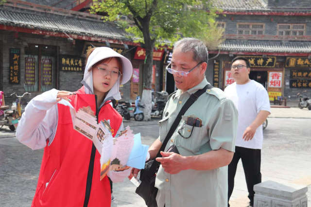 志愿者们依托详尽的宣传册,以光岳楼的历史沿革为核心,为游客们细致地介绍了这座古老建筑所承载的深厚历史价值、独特的建筑风格以及丰富的文化内涵。在解说过程中,他们巧妙地融入了民间传说和历史故事,对光岳楼的各个细节,特别是牌匾题字的深刻寓意及其背后的历史典故进行了深入剖析,让游客在欣赏美景的同时,深刻感受到文化的厚重与深远。