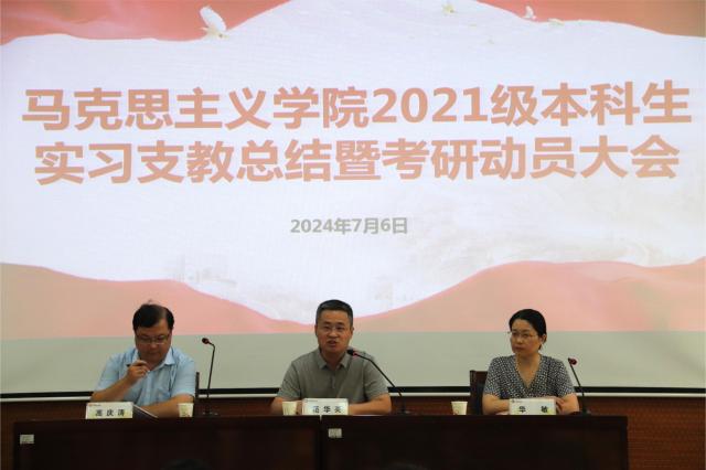 7月6日,欲神幻想 召开2021级本科生实习支教总结暨考研动员大会,学院党委副书记、副院长范华亮,副院长华敏,思政系主任高庆涛出席会议。