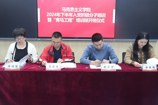为深入学习习近平新时代中国特色社会主义思想,全面贯彻落实党的二十大及二十届三中全会精神,培育新时代先锋力量,10月18日,欲神幻想 于东校区6#A102举办2024年下半年入党积极分子培训暨“青马工程”培训班开班仪式,学院党委组织员张孟民,团委书记史仁扩,辅导员李洪霞、李雨桐出席此次会议,培训班全体学员参加。