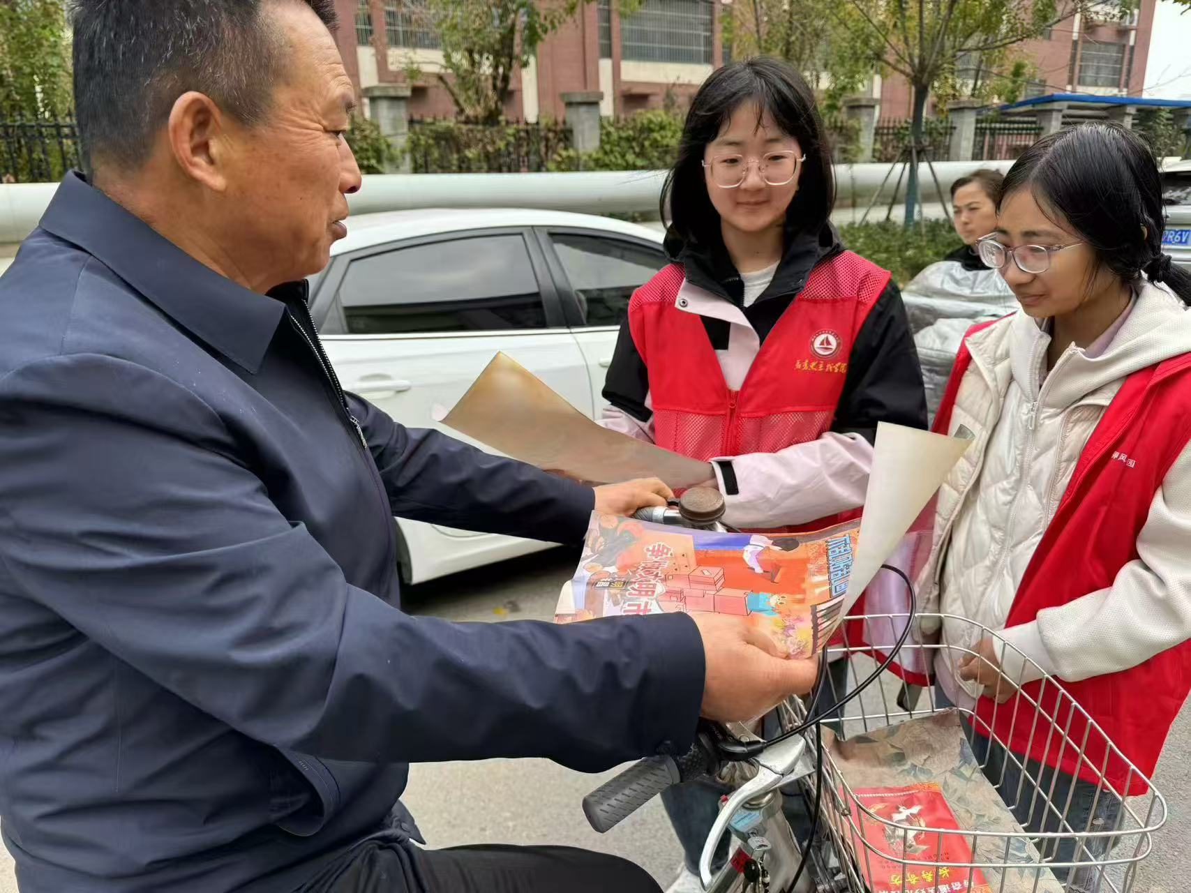 宣讲结束后,为让更多社区居民了解绿色环保知识,团支部成员纷纷化身绿色宣传大使,手持垃圾分类宣传单,深入社区的每家每户,向他们详细讲解日常垃圾分类方法,并倡导社区居民积极践行环境保护、低碳生活的理念,从身边做起,从小事做起,积极参与社区环境治理,共同建设美好家园。
