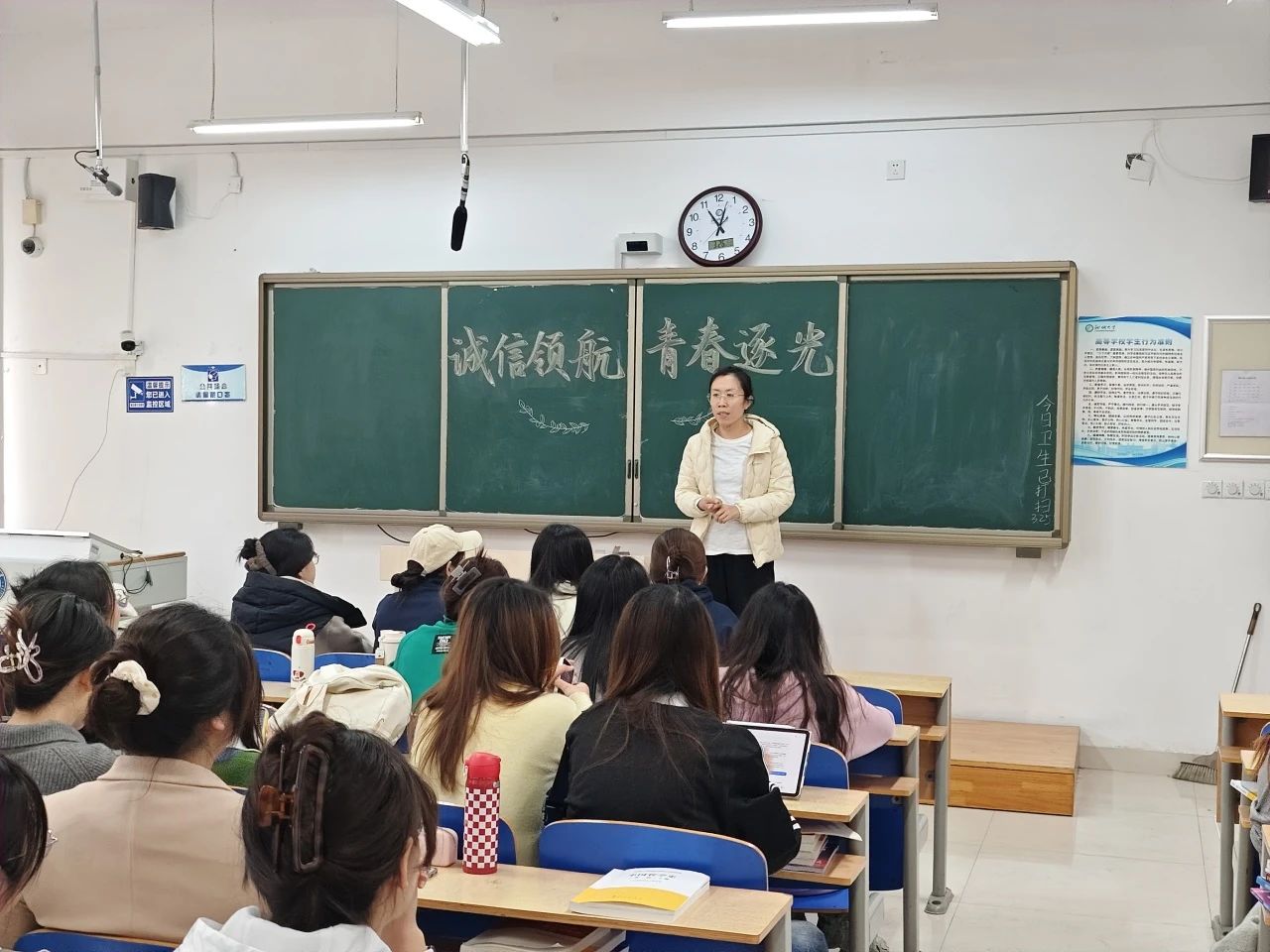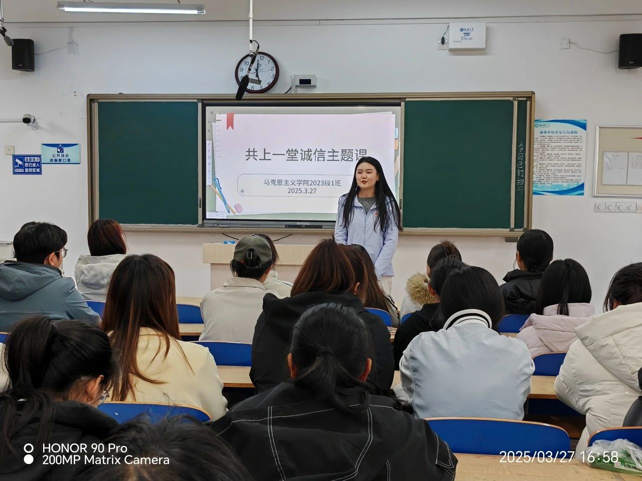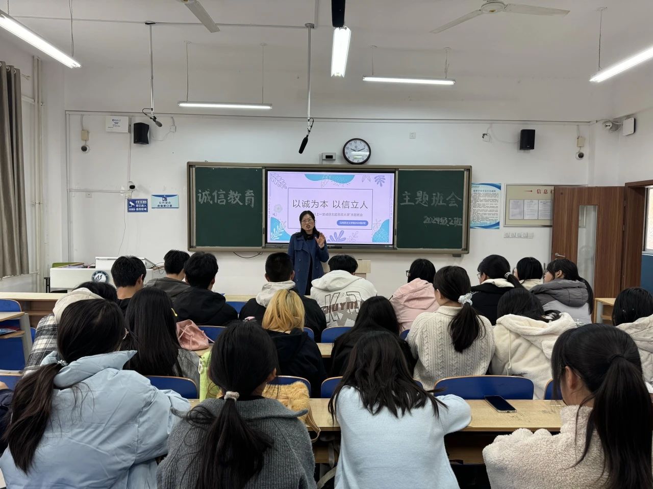 各班结合班级实际情况与班级特色,采取“线上+线下”相结合的方式开展,内容丰富、形式新颖。各班班主任立足学生生活实际,以诚信考试、学术规范等具体场景为切入点,通过引用有关诚信的名人名言、历史典故等,系统梳理诚信文化的历史脉络和现代价值,详细阐述诚信在个人成长、人际交往和社会发展中的关键作用,引导同学们在日常生活中以诚信为立身之本、处世之基。