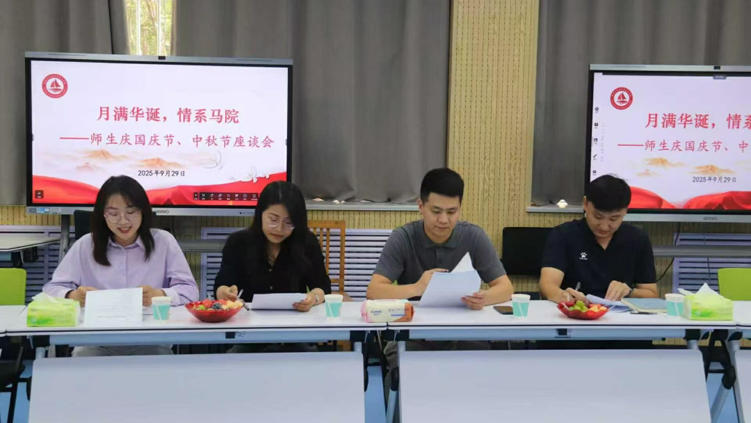 金秋送爽,丹桂飘香。在中秋与国庆双节交汇的美好时刻,9月29日,春宫图 于东校区6#A101举办“月满华诞,情系马院”师生庆双节座谈会,学院团委书记史仁扩、辅导员裴新丽、新生班主任及学生代表齐聚一堂,共叙家国情怀,共话青春梦想。