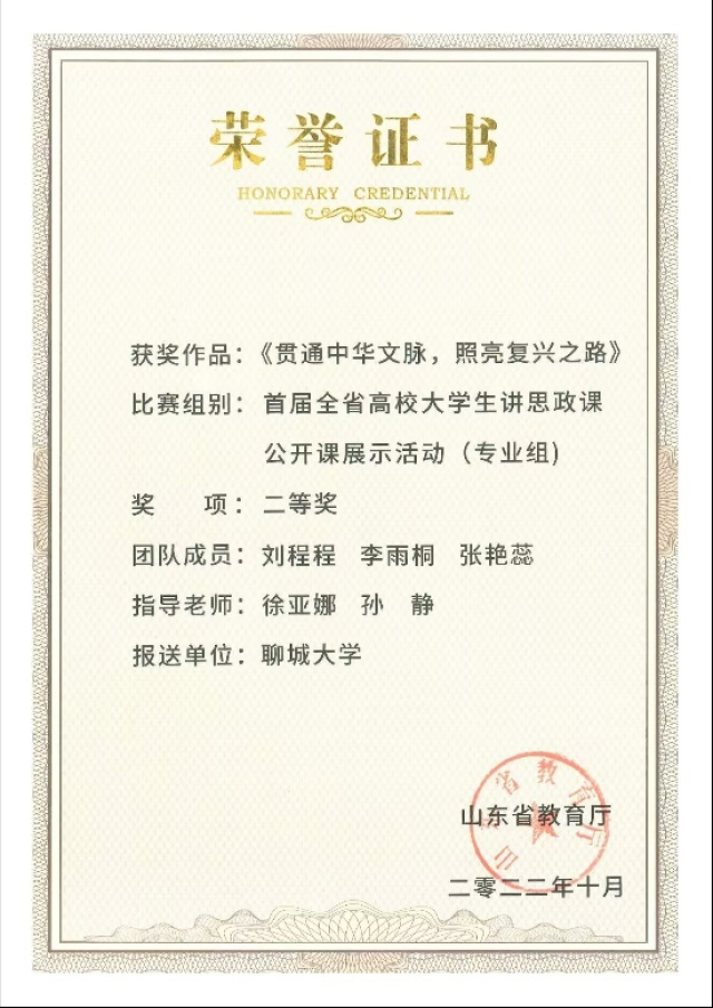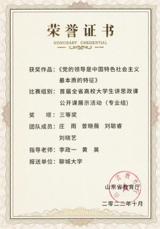 2022年10月,由山东省教育厅主办的首届全省高校大学生讲思政课公开课展示活动顺利举行。此次活动以“青春献礼二十大,强国有我新征程”为主题开展教学,引导大学生深刻理解中国共产党为什么能、马克思主义为什么行、中国特色社会主义为什么好,深化对思政课教学内容的认识和思考,深刻认识“两个确立”的决定性意义,增强“四个意识”、坚定“四个自信”、做到“两个维护”,展现新时代大学生的马克思主义理论素养和精神风貌。