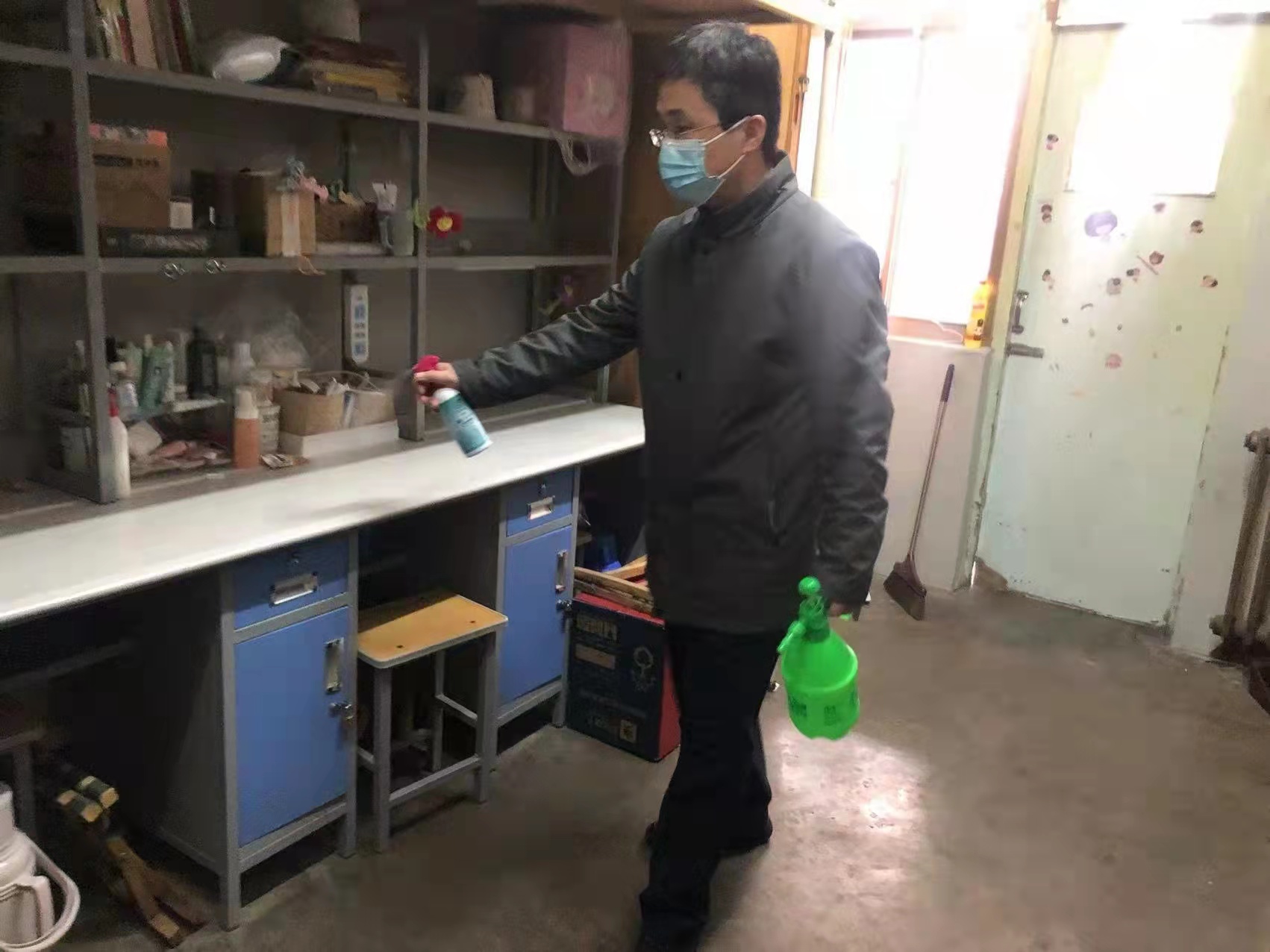 范华亮对消杀工作进行了讨论部署,在了解消杀工作有关程序后,严格按照学校疫情防控期间宿舍消毒标准,科学配比相应浓度的消毒液,紧张有序地进行消毒清扫工作。老师们戴好口罩、全副武装,对宿舍楼主要场所进行逐层、逐片、逐点消杀。消杀队伍背消毒喷洒器对宿舍走廊等大型消毒区域进行全面喷洒,小型消毒区域重点覆盖学生寝室卫生间、阳台、门把手等高频接触物,对宿舍常用各类物品分别进行消毒液浸泡与擦拭晾晒,着重清除易忽视的楼梯死角、扶梯扶手、消防器材区、墙壁缝隙等易产生灰尘滋生细菌的地方,做到不留死角、不留盲区,实现多维度全方面的立体消杀。范华亮高度重视个人防疫和宿舍消杀工作,强调要按照处处要消毒的宿舍管理工作要求,对宿舍消杀工作进行反复检查整改,全面消杀做好防疫工作,营造安全良好的住宿环境,为学生返校安全保驾护航。