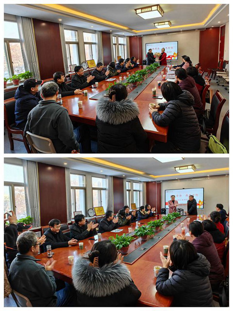 会议最后,学院教师代表为郑继江老师敬献鲜花和退休礼物。座谈会在温馨祥和的氛围中结束。
