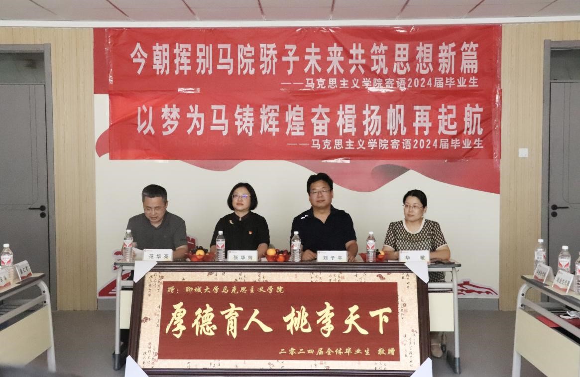 会上,张华筠代表学院向毕业生致以热烈的祝贺和真诚的祝福,并对毕业生提出三点要求:第一,牢记院训与校训,脚踏实地向前进。希望同学们牢记院训和校训,不断修炼乐观豁达的人生态度和敢于担当的良好品格,始终保持本心、脚踏实地。第二,高举薪火与梦想,共话情谊马院人。同学们要充分发扬“崇教、尚学、敦厚、奋进”的聊大精神,传播聊大奋进薪火,深刻铭记回忆,在今后以校友的身份常回“家”看看。第三,严明纪律与规矩,自成方圆谱人生。希望同学们在严明纪律中淬炼自己,努力成为堪当民族复兴大任的时代新人。