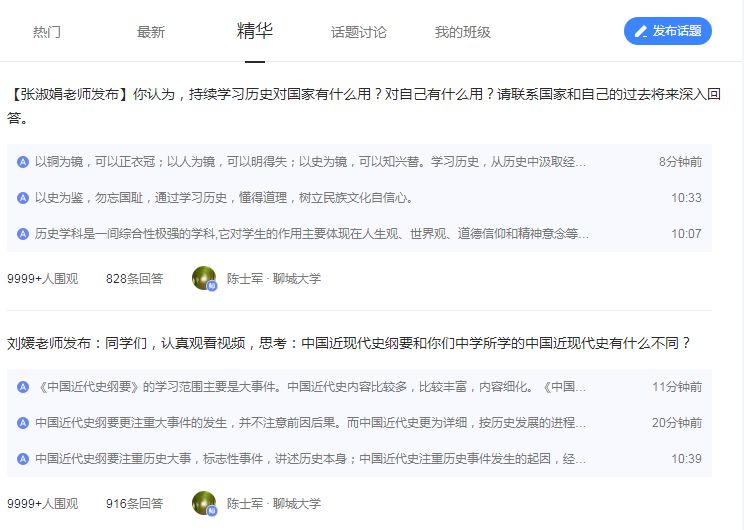 【张淑娟、刘媛等教师发布问题及学生交流数据】