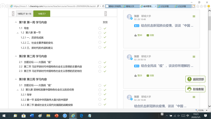如何在概论课网络教学中积极用好疫情防控这个活教材,将全国人民在党的领导下积极面对疫情、千方百计开展疫情防控的内容融入课堂、融入教学,在特殊时期做好“三进”工作,坚守好思想政治教育的主阵地,增强对青年群体的舆论引导能力,成为概论课线上教学的当务之急。在欲神幻想 领导的统筹安排之下,概论课教研室遵循习近平总书记“八个统一”的要求,守正创新,积极打造有高度、有深度、有温度的魅力网课。