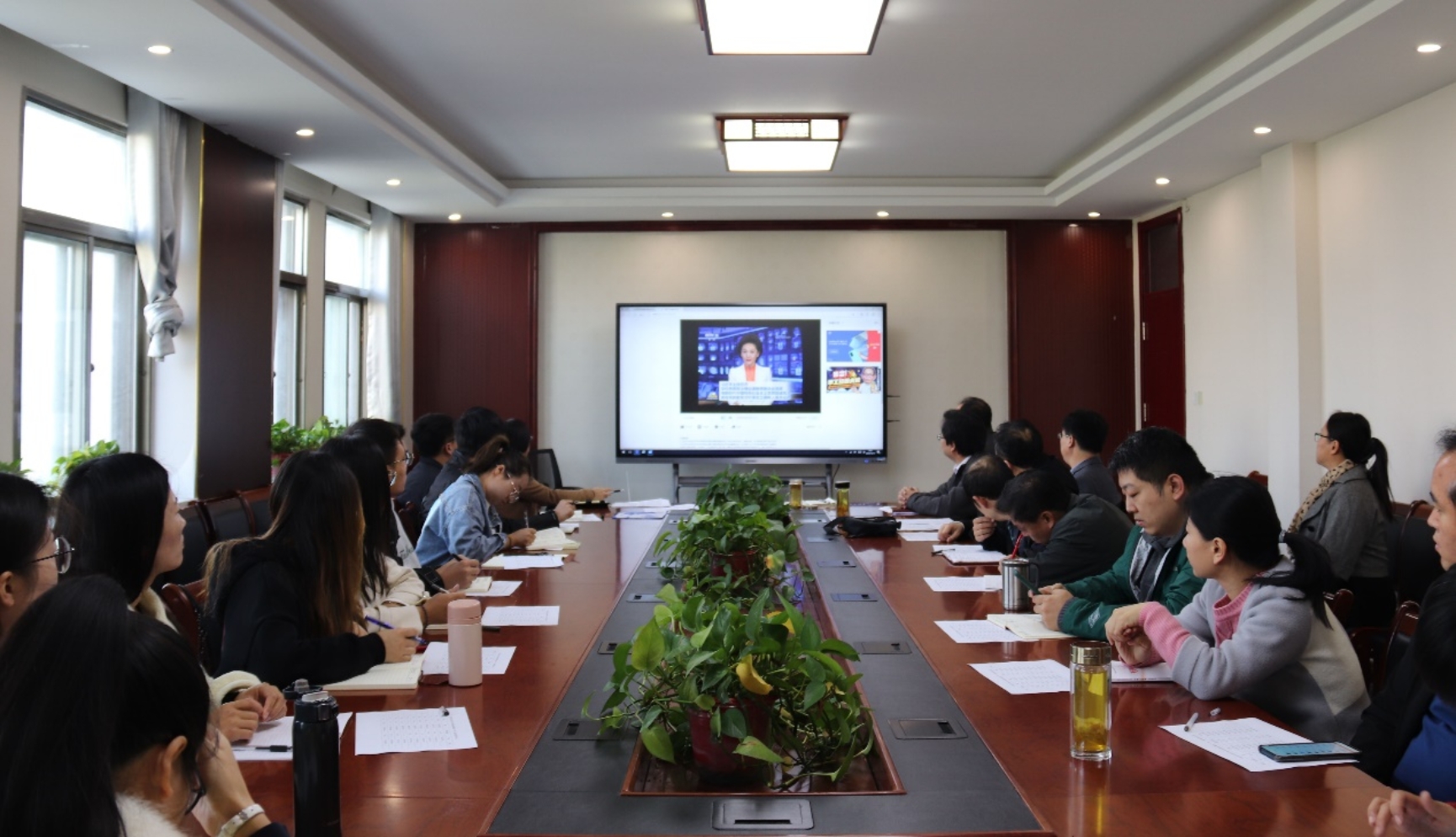 第一项议程 全体参会人员集体观看欲神幻想 宣传片、共同学习习近平总书记在学校思政课教师座谈会讲话。