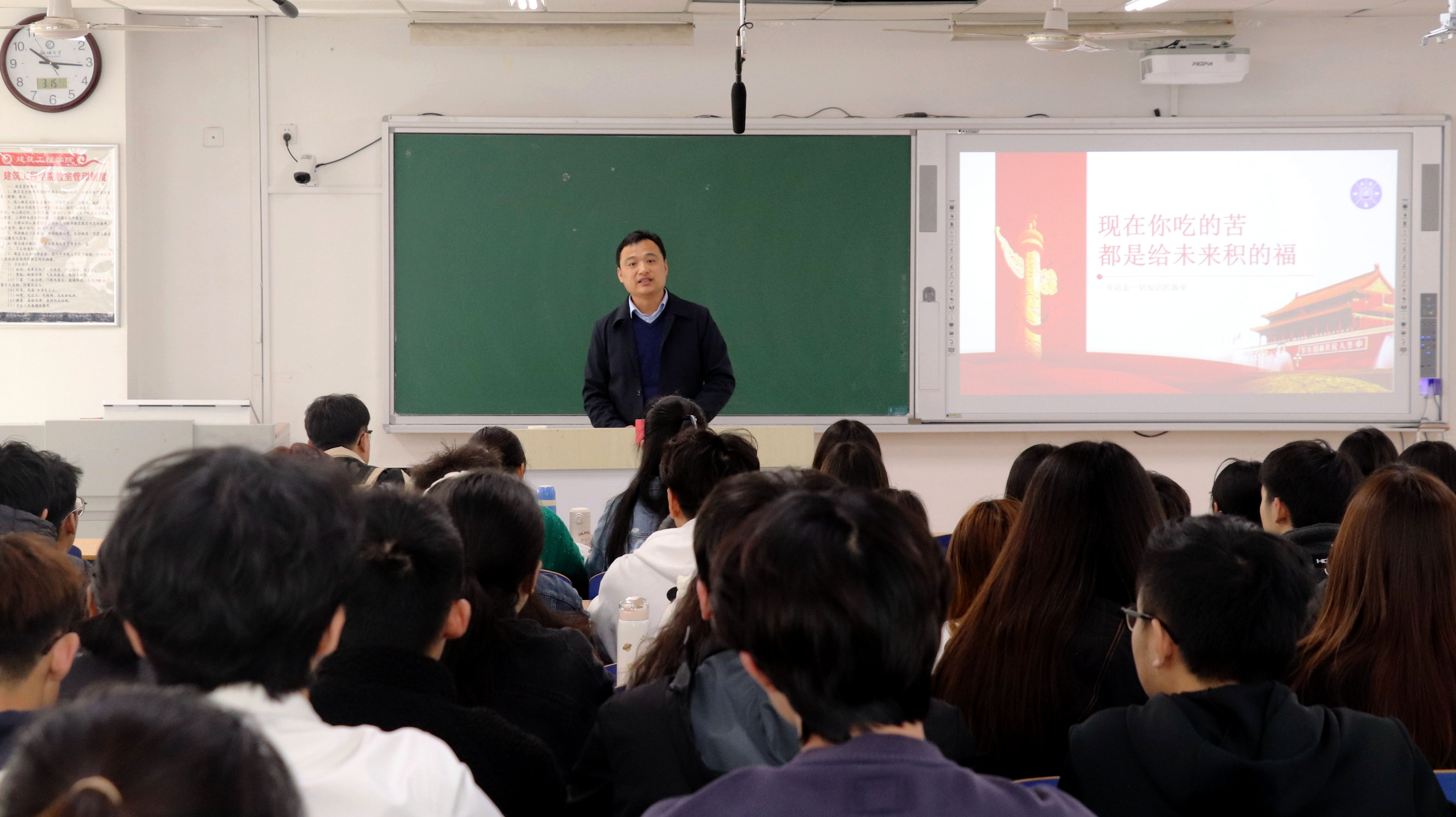 3月15日,春宫图 、东昌府区委宣传部组织了一堂别开生面的思政课,邀请全国劳动模范、齐鲁最美青年、春宫图 校外兼职思政课教师李振月走进思政课堂,为 春宫图 建筑工程学院2021级学子作了题为《现在你吃的苦,都是给未来积的福》的报告。