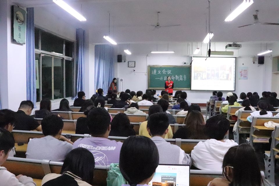 10月27日,春宫图 青年大学生时政宣讲团成员孟煜、郭昊铭在1号楼301室作了题为《遵义会议——开启革命的新篇章》的宣讲。商学院2022级、2023级学生代表参加此次宣讲会。