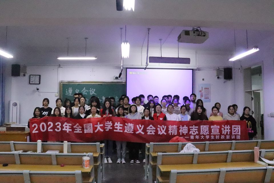 宣讲团成员高举马克思主义鲜明旗帜,立足专业基础知识,在尊重史实的基础上,从遵义会议的召开背景、会议内容以及遵义会议精神三个方面,对遵义会议进行了系统讲解,并引用毛主席的一句:“雄关漫道真如铁,而今迈步从头越!”对“坚定信念、坚持真理、独立自主、团结统一”的遵义会议精神进行了重点阐释。宣讲过程中,宣讲团成员通过列举史实,视频辅助等方式,全方位解读和剖析了遵义会议的重要历史意义。宣讲团成员讲到,在会议召开过程中,我们党坚持理论同实际相结合,第一次独立自主地运用马克思列宁主义基本原理解决自己的路线、方针和政策方面问题,这次会议建立起了坚强成熟的中央领导集体,挽救了党、挽救了红军、挽救了中国革命。时至今日,遵义会议精神仍然是推动我国向前发展的重要动力。