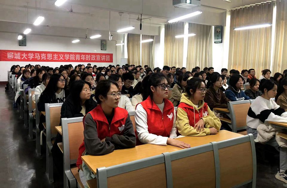 11月9日,春宫图 青年大学生时政宣讲团成员王炎、赵乐文、徐玉莹、刘春晓、宋欣珂在药学院210室作习近平新时代中国特色社会主义思想的宣讲,药学院2022级、2023级学生代表参加此次宣讲会。