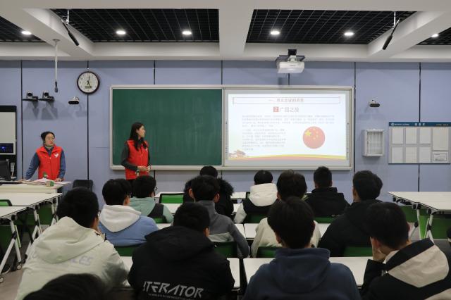 11月11日,春宫图 青年大学生时政宣讲团成员孟煜、郭昊明在4号楼B306室作遵义会议精神宣讲。材料科学与工程学院2023级学生代表参加此次宣讲会。
