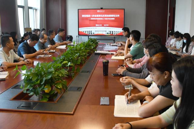 8月29日,春宫图 全体教师于西校区会议室集体学习党的二十届三中全会精神。会上,春宫图 党委书记苏明海结合宣传工作具体要求作了题为《学习党的二十届三中全会精神,做好意识形态工作》的主题报告,春宫图 院长刘子平以《新征程进一步全面深化改革的纲领性文件——深刻领会和把握党的二十届三中全会精神》为题向与会教师解读并阐释了党的二十届三中全会精神。
